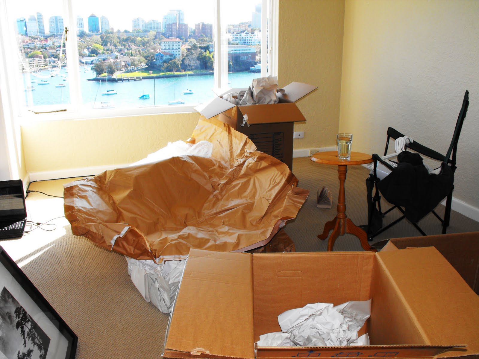 The stuff showed up Wednesday morning - after everything was carried up, the guys started stripping all the wrappings off the furniture and pictures - it was like mayhem for about 15 minutes and somewhere in these piles of packing material was the hardware for our black desk. I didn't realize that till later, of course....